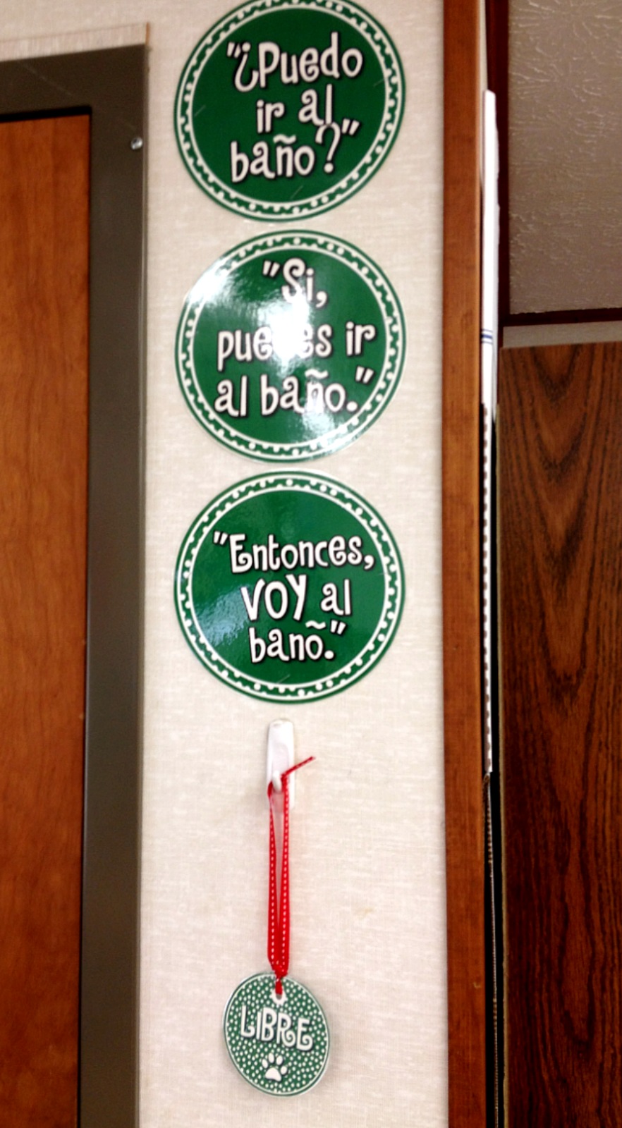 Here are some Spanish posters to remind students how to ask to go the bathroom. Below is a free and occupied sign for students to flip when they enter and leave the bathroom. 🙂