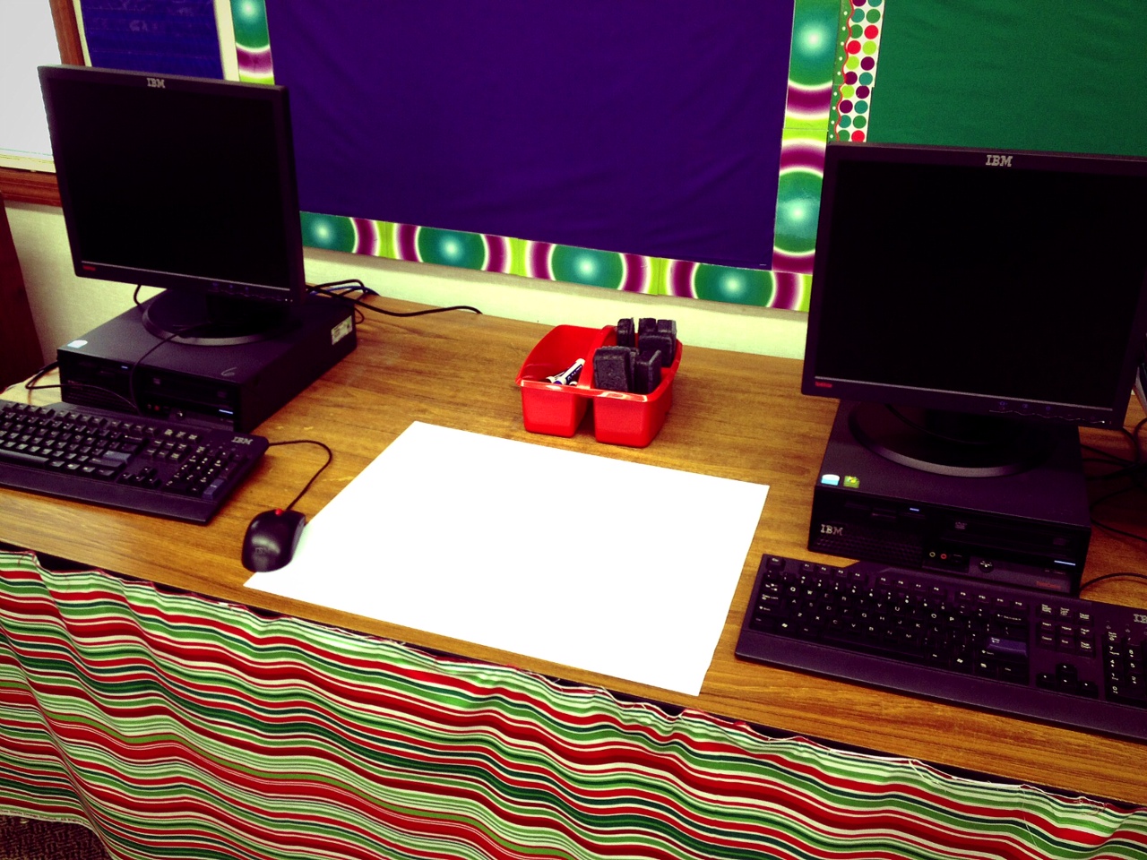 I found some dry-erase vinyl at Hobby Lobby and it’s so cool. When students play Smart Board games, they can work out problems right there instead of trying to use the marker feature on Smart Board.